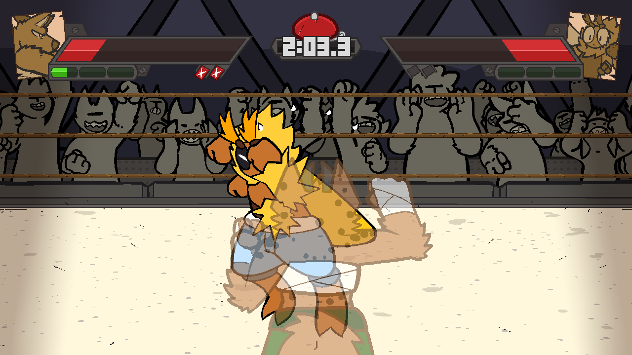 Expect to see/hear the occasional placeholder, particularly for audio, as we have yet to implement many sound effects and music for fighters aside from Fwiffy and Tonfa. It's not that the game is supposed to be quiet for many of the sequences- There's just no audio to put ingame because we haven't made it yet!